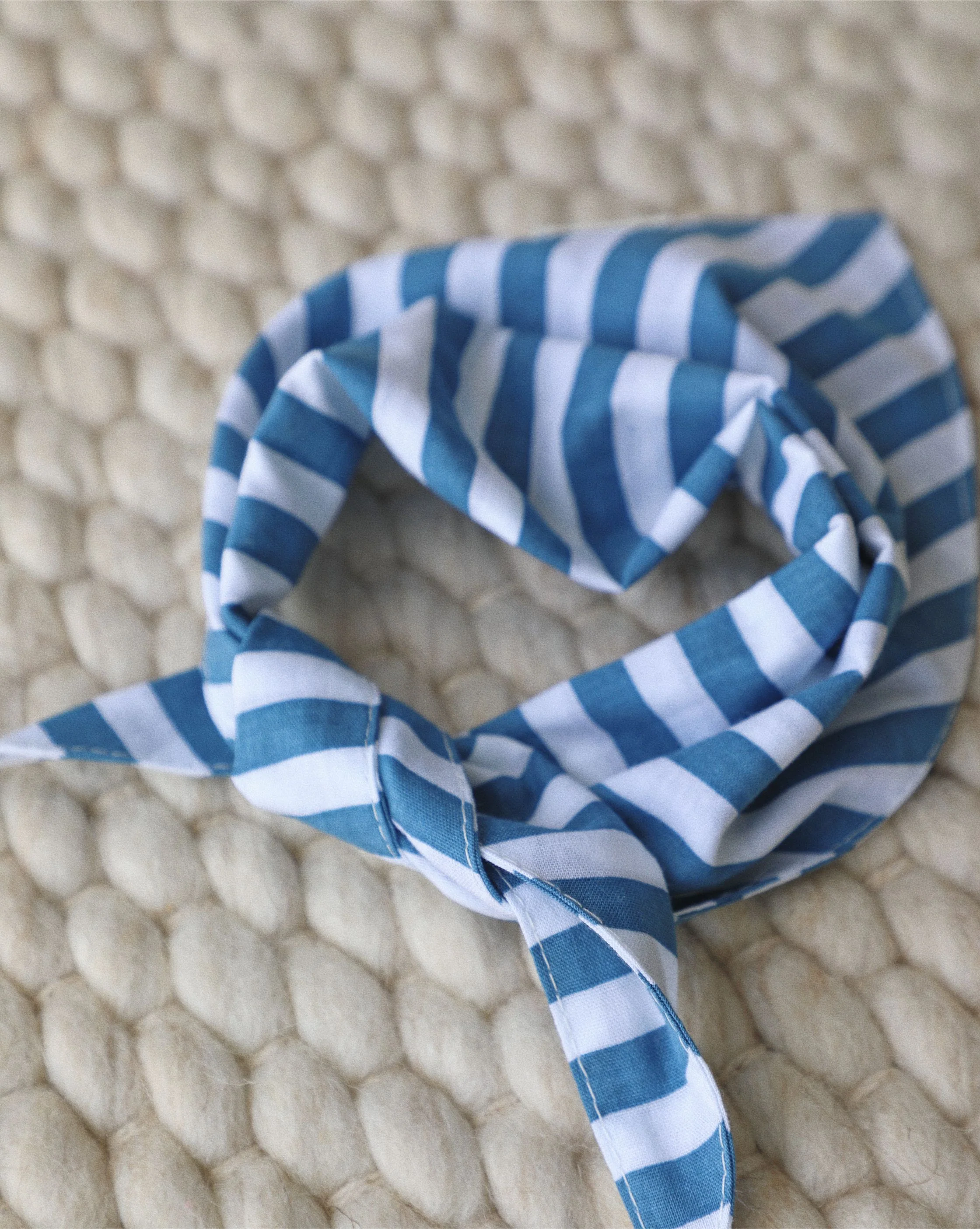 Tailor cut and ready to wear, this bandana is made up of soft cotton, with a vertical stripe in the perfect shade of blue. Designed to last through any adventure or festive affair!